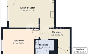 Łączna powierzchnia mieszkania: 44,42 m²