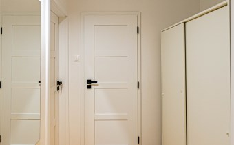 - W pokojach, kuchni i przedpokoju na podłogach panele, w łazience na podłodze terakota