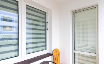 - Okna PCV, na oknach rolety wewnętrzne dzień-noc