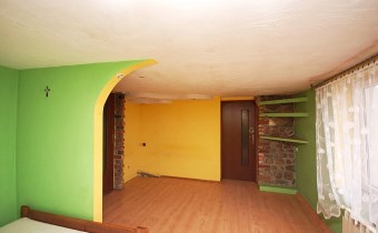 podłoga panele,ściany płyta karton-gips,imitacja piaskowca,okno pcv+garderoba ok 3m2/wejście na część strychową/