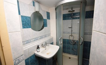 5.Łazienka ok 3m2 podłoga terakota,ściany glazura,kabina prysznicowa