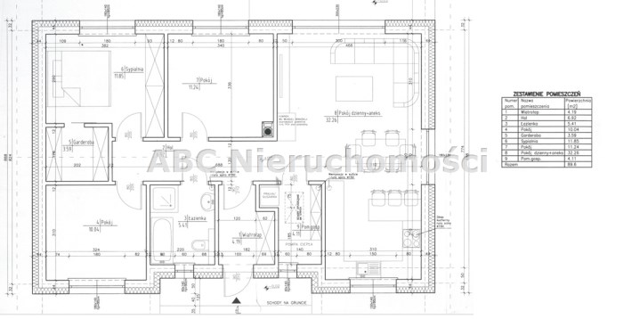 - Salon z aneksem kuchennym o pow. 32,26m2