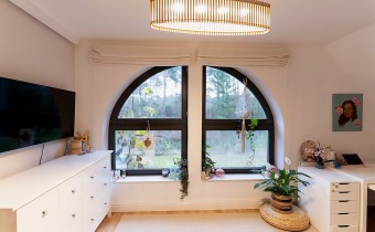 Na piętrze znajduje się trzy oddzielne, niezależne pokoje. W pokojach duże, niesztampowe przeszklenia okienne