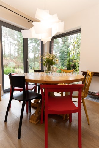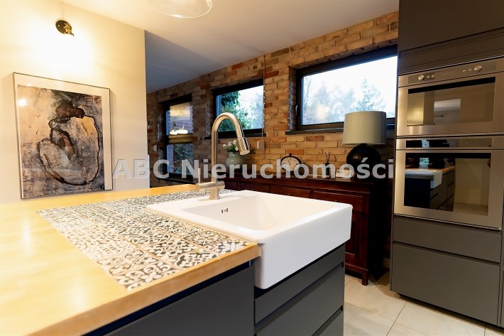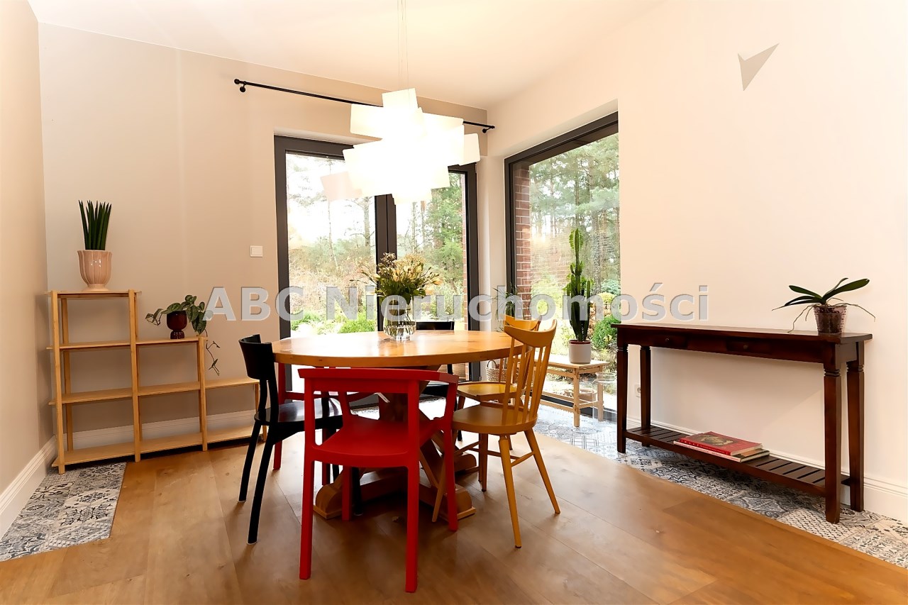 Nowoczesna stolarka okienna w całym domu, rolety sterowane elektrycznie. Ściany gipsowane, malowane, częściowo wykończone oryginalną cegłą. Na podłogach deska drewniana wysokiej jakości oraz glazura. Na działce garaż o pow. ok. 50 m2 oraz wiata.