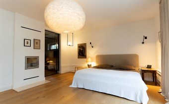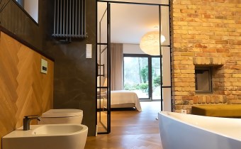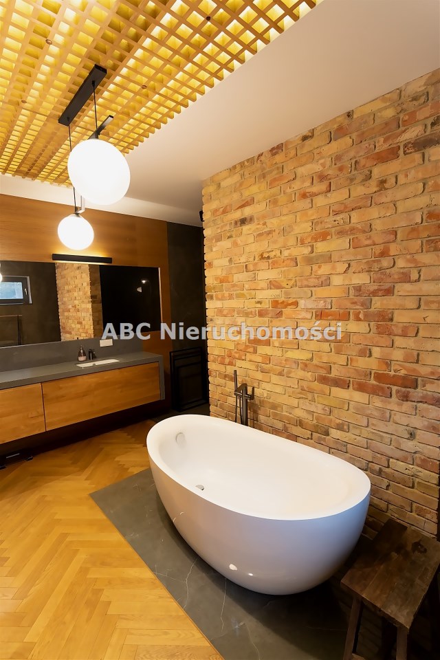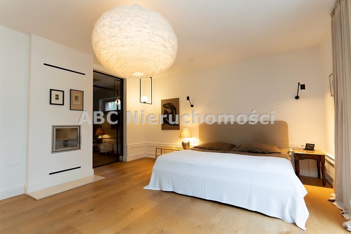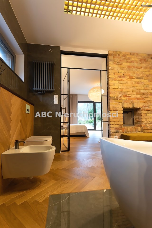 Wyjątkowa sypialnia z pokojem kąpielowym. Duża sypialnia z widokiem na ogród i wyjściem na taras na którym poranili z kawą są wyjątkowe. Pokój kąpielowy z gustowna wanna wolnostojącą i częścią z natryskiem. Pokój kąpielowy z dużymi lustrami, elementami drewna i stylowej cegły