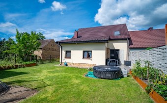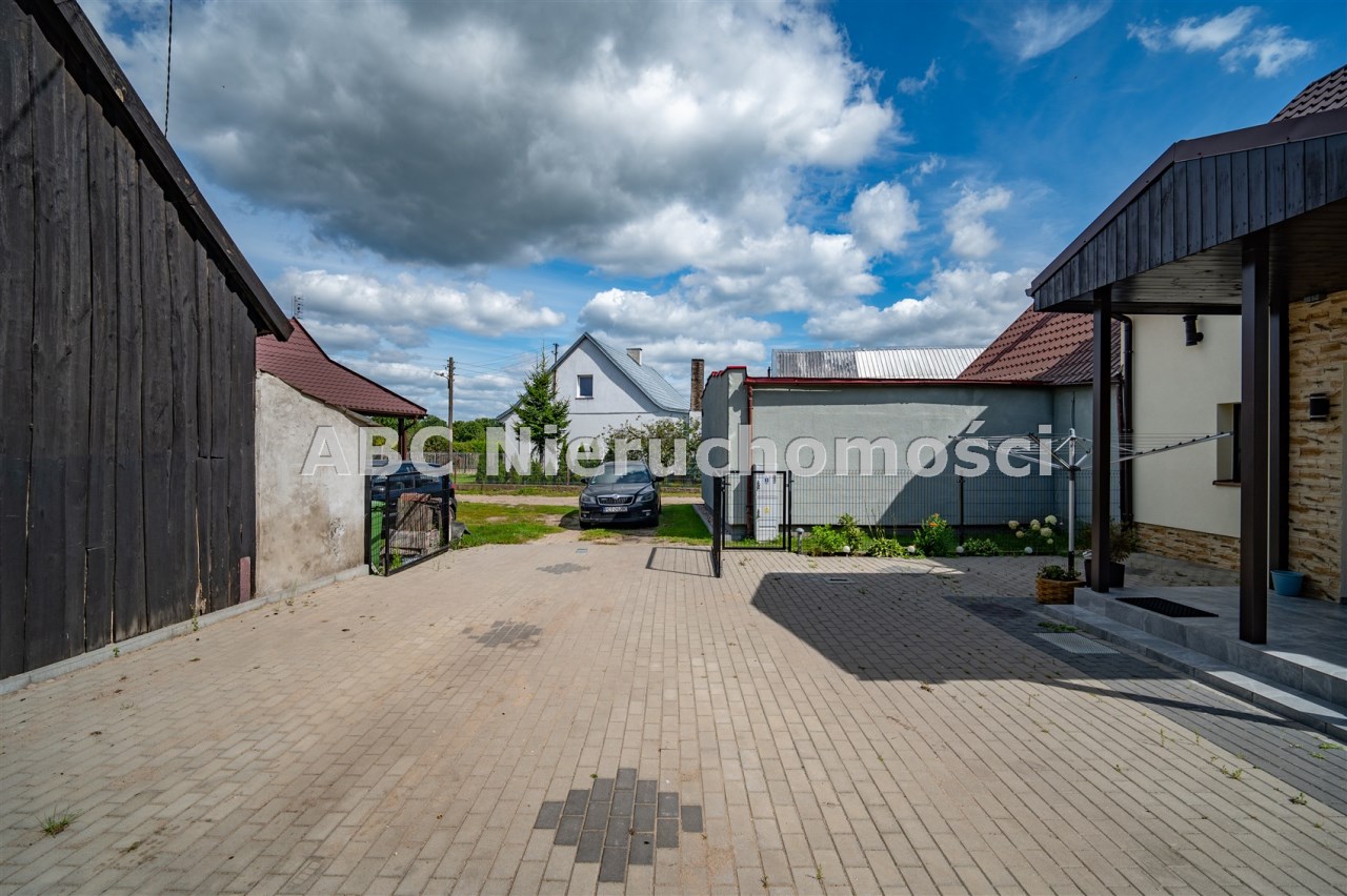 Dach konstrukcji drewnianej kryty blachodachówką. Okna PCV. Na podłodze terakota oraz panele. Ściany: glazura, cegła dekoracyjna, tapety, tynk żywiczny.