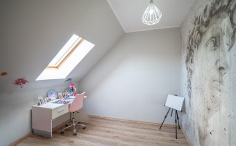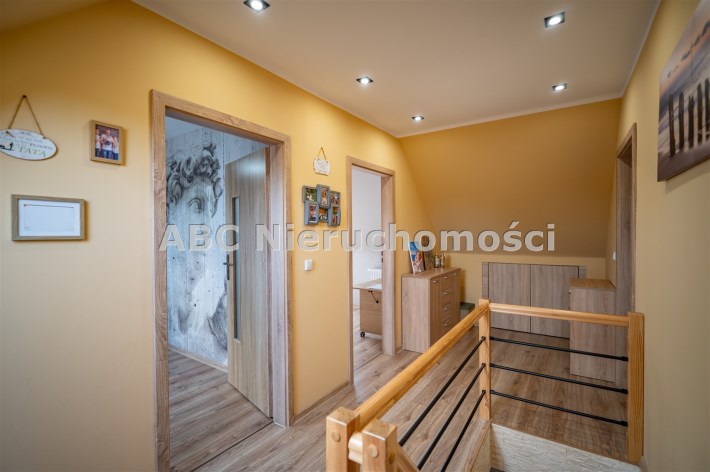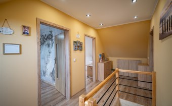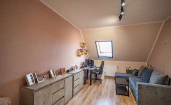 salon 18m3; aneks kuchenny 8m2; łazienka 6,7m2; pokoje (8,5m2; 10m2; 13,6m2; 6,5m2; 6,5m2), korytarz 10m2, wiatrołap 3,3m2