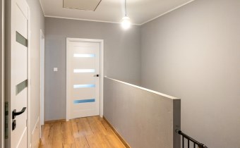 Klatka schodowa - schody drewniane, barierka zabezpieczająca na dole i górze - 4,15 m²