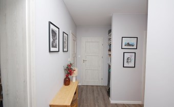 3.Komunikacja/sień+holl+korytarz/-5,85m2+12,68m2 sień-podłoga gres,zabudowa szafa pozostająca w cenie,pozostała część podłoga panele,ściany gipsowane-malowane.