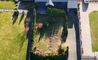 Usytuowanie budynku przy tylnej granicy działki, pozwala wykorzystać pozostałą jej część na zabudowę według własnego projektu i potrzeb.