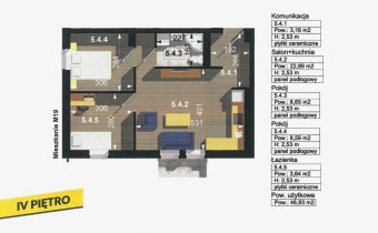 Przedmiotowy lokal ma pow. 46,93m2 i położony jest na IV piętrze. Sprzedawany jest w stanie deweloperskim. Mieszkanie gotowe jest do wykończenia przez nowego nabywcę