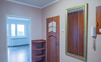 W mieszkaniu stolarka okienna PCV, ściany gipsowane/malowane oraz tapety. Na podłodze panele oraz terakota