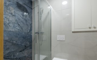 - łazienka z WC z dużą kabiną prysznicową