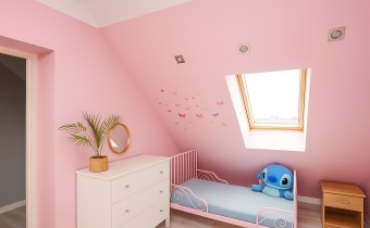 4.Pokój ok 10,70m2 podłoga panele, ściany gipsowane+płyta karton-gips, okno połaciowe Velux