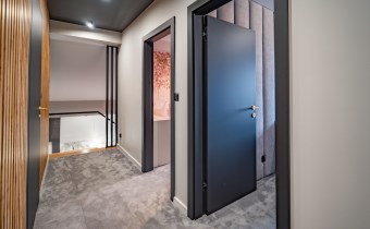• Antresola, na której znajdują się dwa dodatkowe pokoje oraz druga łazienka – doskonała przestrzeń dla dorastających dzieci