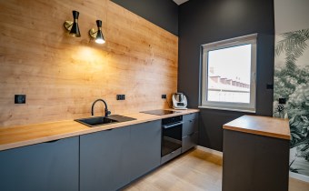 • Przestronny salon z aneksem kuchennym i jadalnią – jasny, z dużymi oknami, stanowiący serce mieszkania; miejsce idealne do wspólnego spędzania czasu i spotkań z bliskimi. Z salonu wyjście na balkon, idealny na relaks po dniu pracy lub poranne kawowe chwile. W pełni wyposażona kuchnia