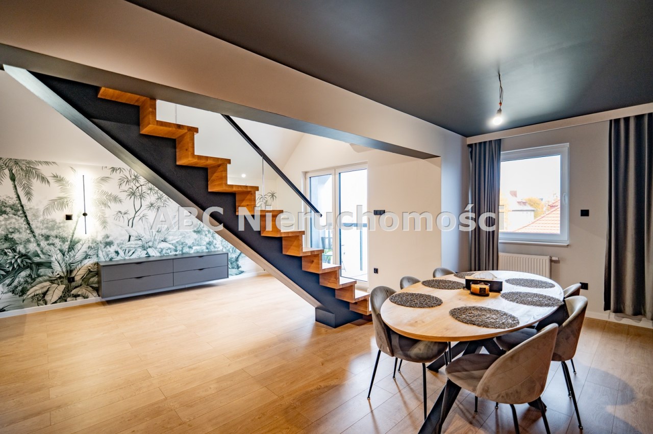 To mieszkanie to świetna alternatywa dla domu – łączy w sobie zalety dużej przestrzeni, nowoczesnej architektury i wygody mieszkania w mieście.