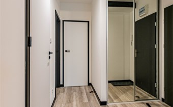 W przedpokoju duża szafa z lustrem i domofon.
