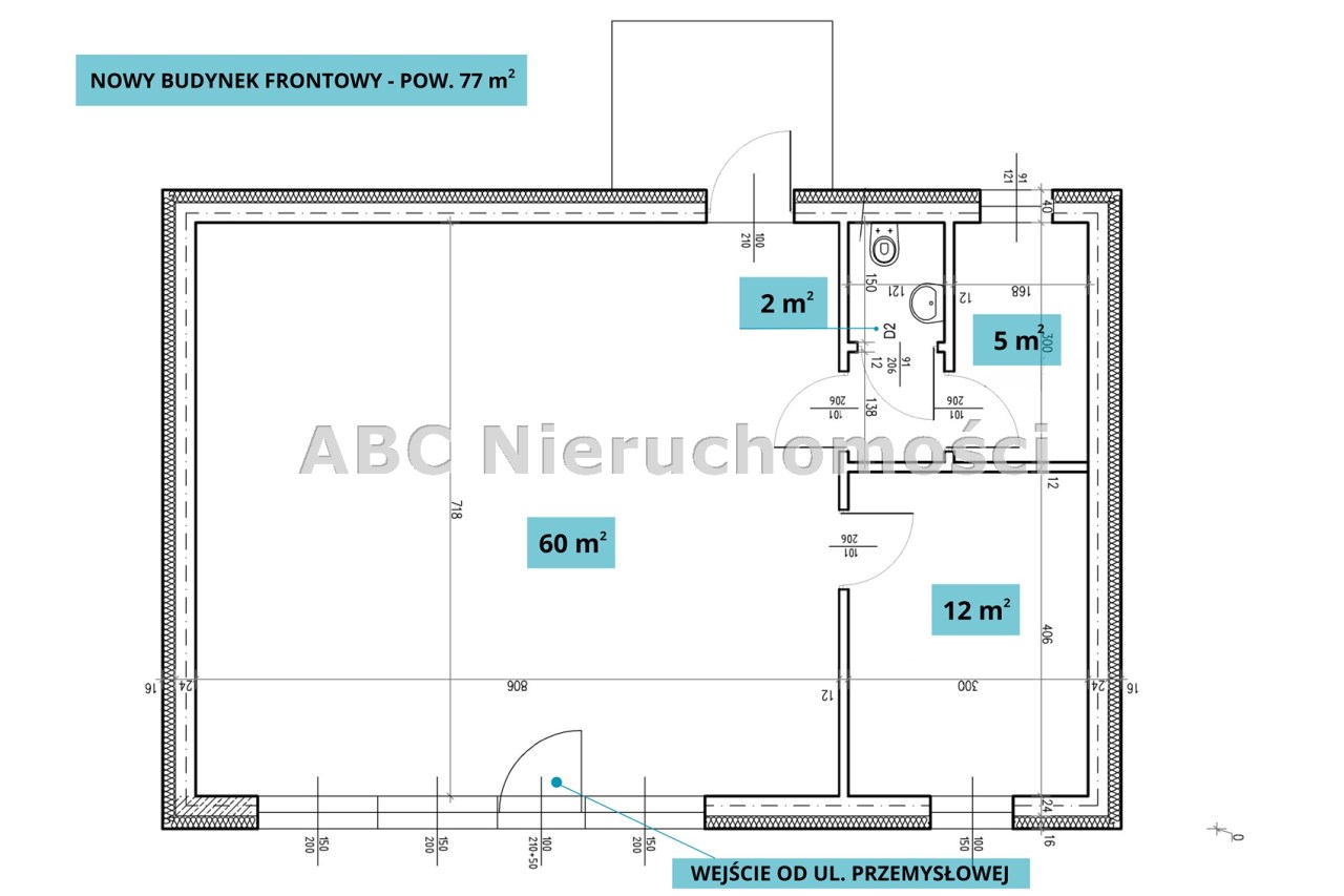 2. Nowy budynek frontowy o funkcji usługowo-handlowej – pow. 77 m²